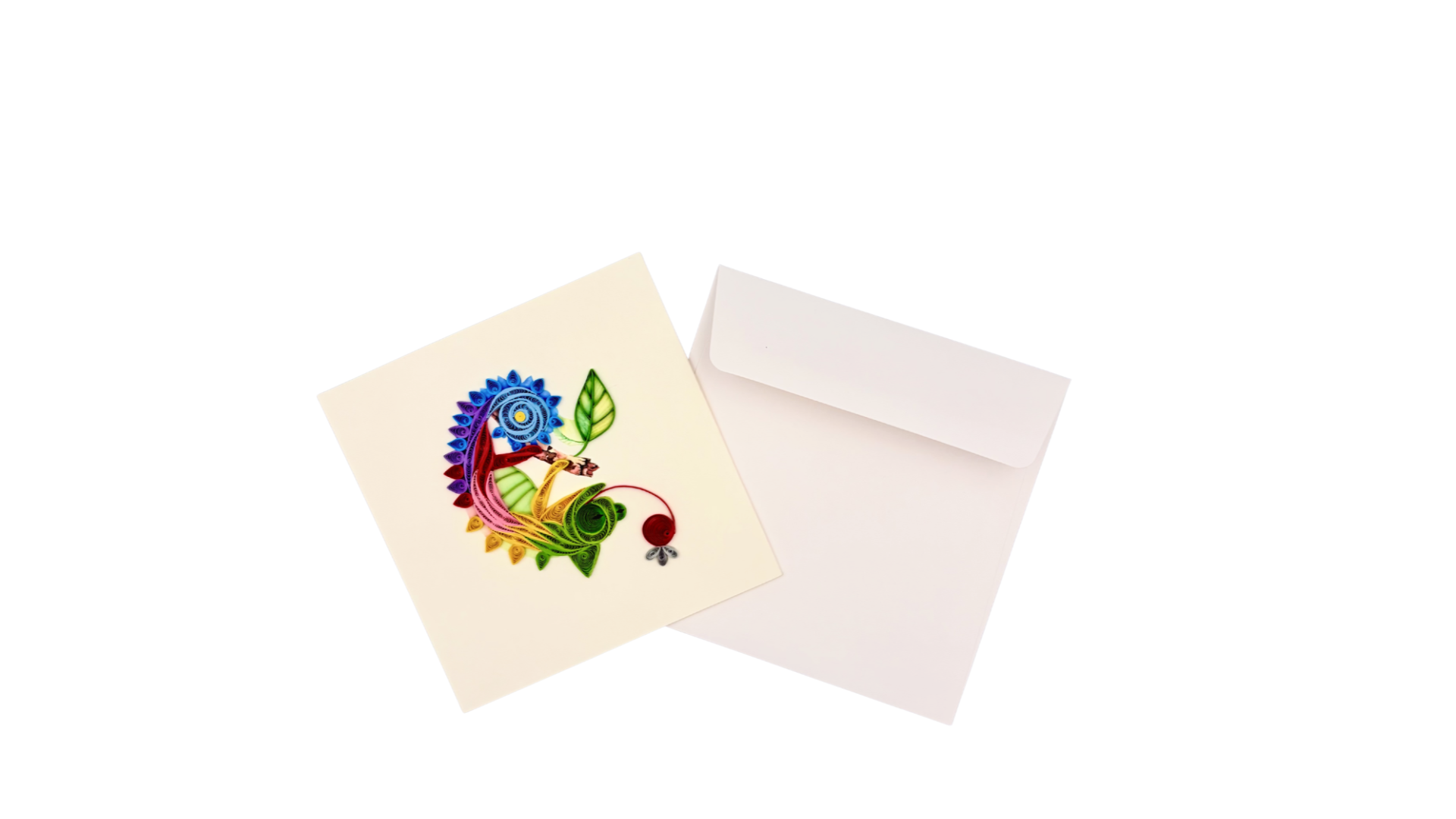Quilling is a creative paper art technique in which thin paper strips are rolled, shaped, and glued together to form beautiful decorative patterns. Combined with colorful printed artwork, the paper coils add texture and emotion to the card.