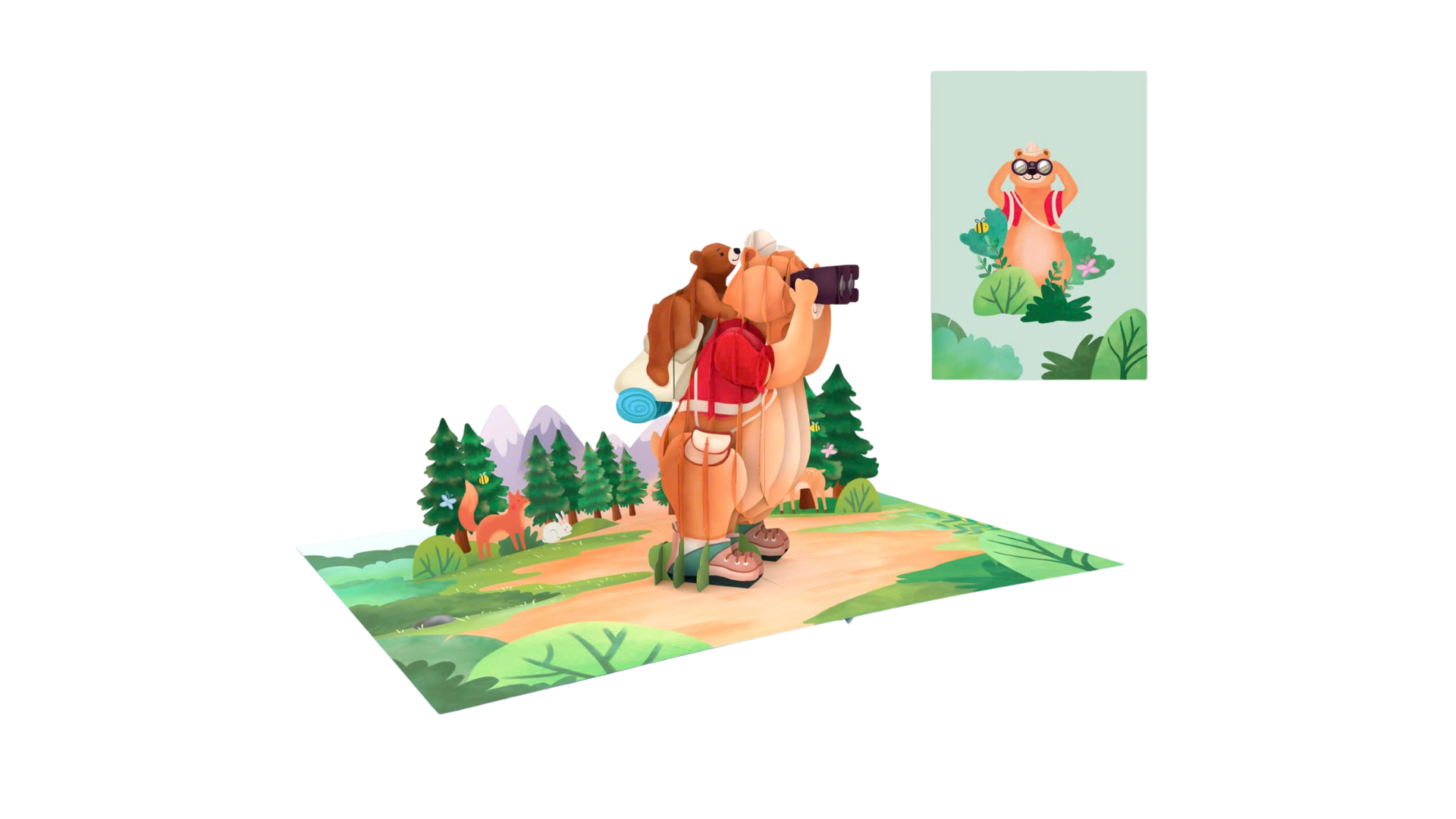 Celebrate your favorite explorer with our "Father’s Day Adventure" 3D Pop-Up Card! Perfect for Father's Day, birthdays, or just to say "thank you," this whimsical design captures the spirit of discovery and the great outdoors. Open the card to reveal a charming, multi-layered bear character equipped for a hike with a red backpack, sturdy boots, and binoculars held high to scan the horizon. The card unfolds into a vibrant landscape of winding forest paths and snow-capped peaks, creating an immersive 360-degree environment for the adventurous dad.
