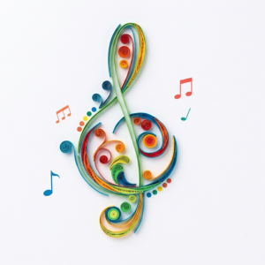 This quilling card features a colorful treble clef symbol with musical notes made from carefully shaped paper coils. The dynamic and artistic design makes it a perfect handmade card for music lovers, musicians, teachers, and performers.