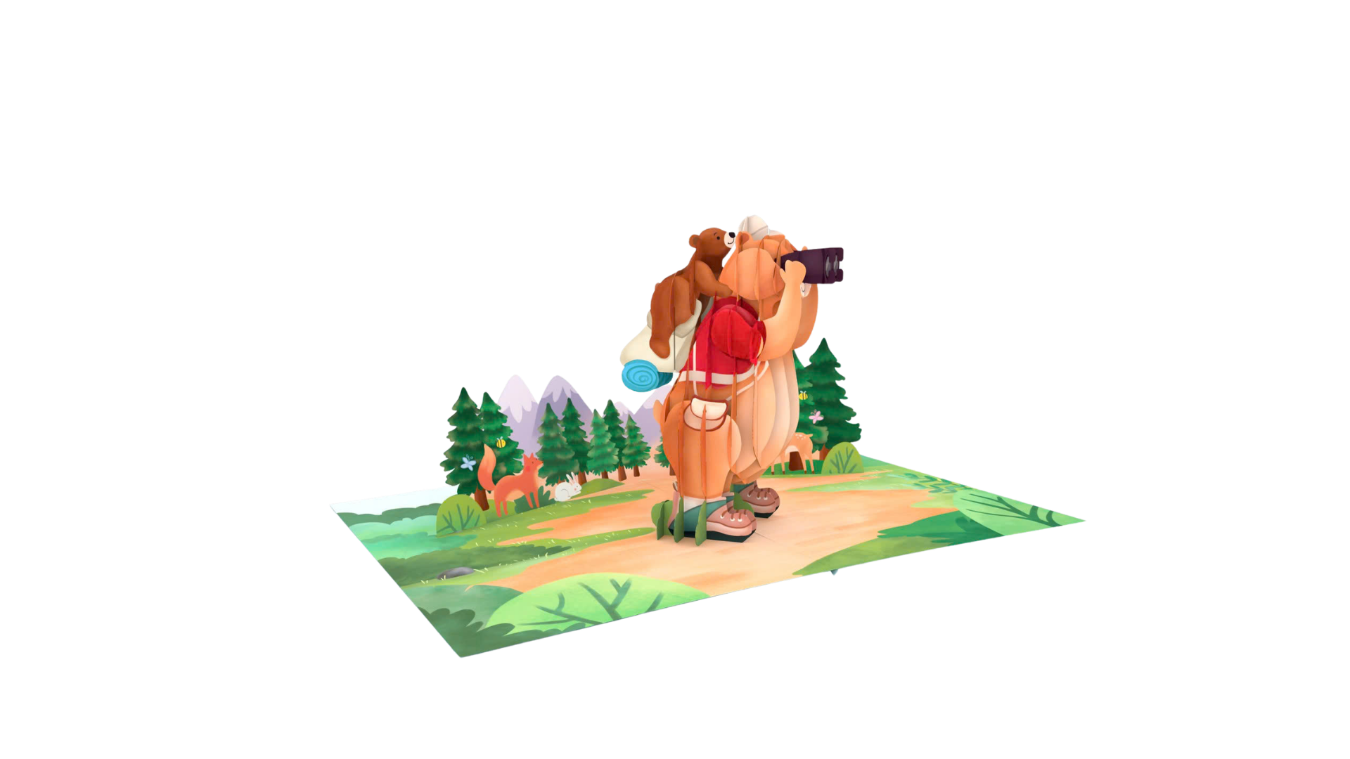 Celebrate your favorite explorer with our "Father’s Day Adventure" 3D Pop-Up Card! Perfect for Father's Day, birthdays, or just to say "thank you," this whimsical design captures the spirit of discovery and the great outdoors. Open the card to reveal a charming, multi-layered bear character equipped for a hike with a red backpack, sturdy boots, and binoculars held high to scan the horizon. The card unfolds into a vibrant landscape of winding forest paths and snow-capped peaks, creating an immersive 360-degree environment for the adventurous dad.