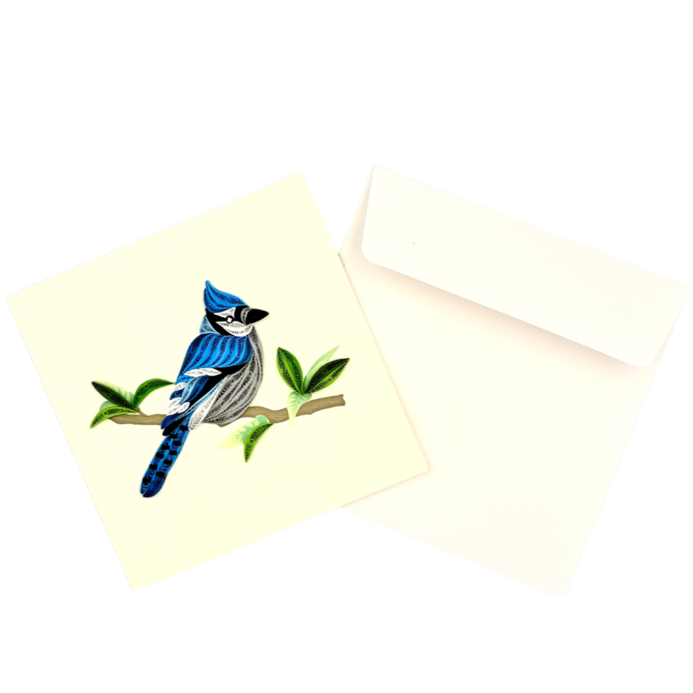 Capture the beauty of nature with this elegant quilling card featuring a graceful blue jay perched on a branch. Crafted from carefully rolled paper strips, every feather detail is brought to life with precision and artistry.