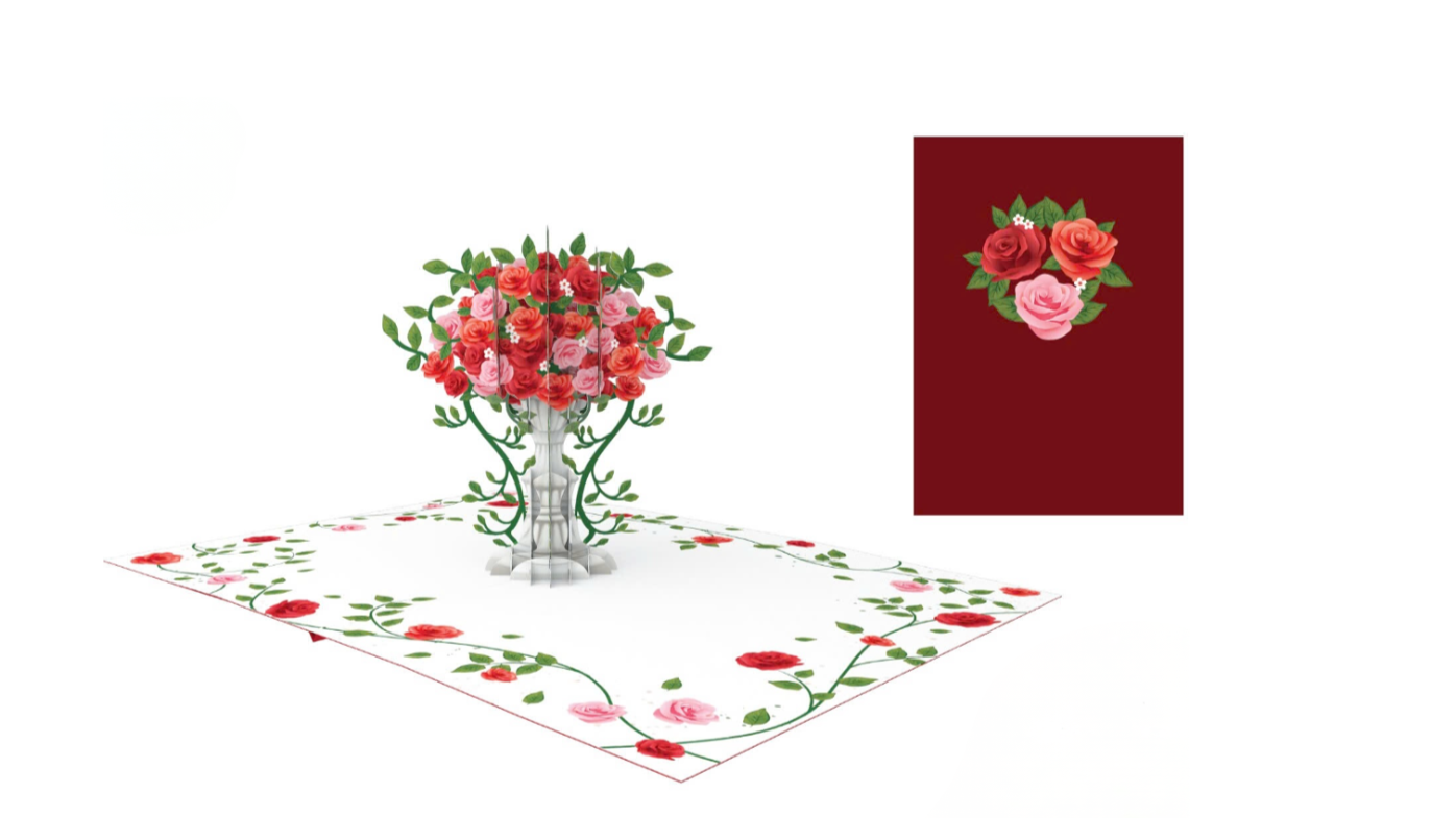 Capture the essence of romance and appreciation with our "Roses" 3D Pop-Up Card. A timeless masterpiece of paper engineering, this card is the ultimate gesture for Mother’s Day, Valentine’s Day, anniversaries, or any moment that deserves a touch of elegance. Upon opening, a lush arrangement of red and pink roses "grows" from an intricate white pedestal. It’s a stunning floral centerpiece that stays in full bloom forever. Perfect for partners, mothers, or dear friends, this card doubles as a beautiful decorative piece that adds a touch of spring to any desk or mantel.